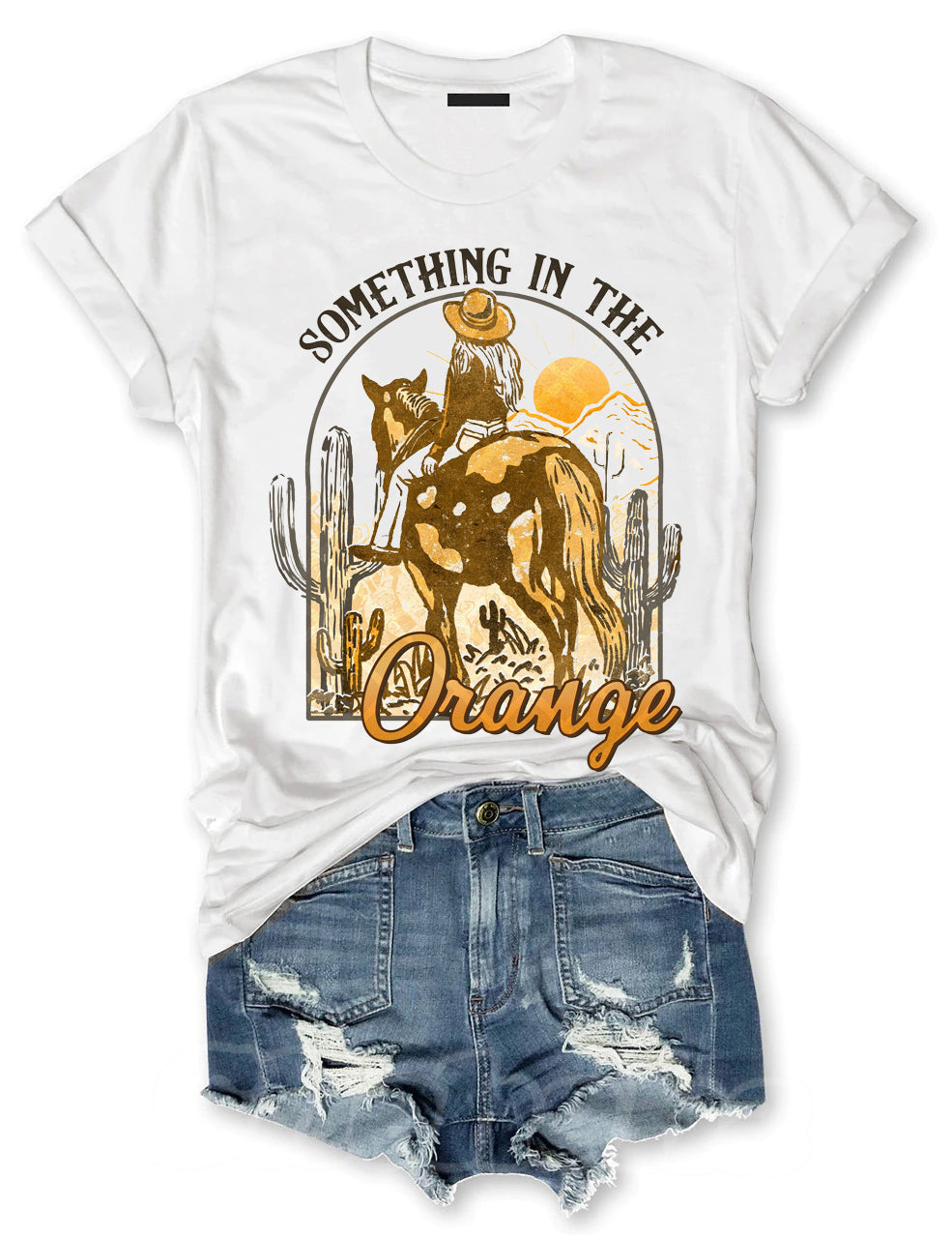 Something in the Orange Western Sunset Cowgirl T-shirt