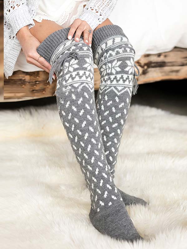 Geometric Knee-High Knitted Warm Socks
