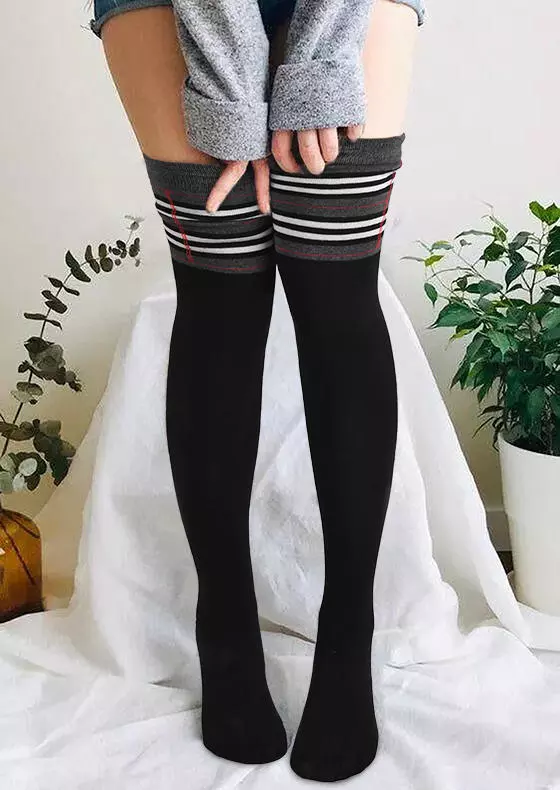 Striped Color Block Thigh-High Socks