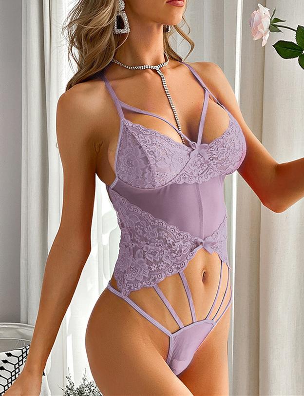 STRAPPY FLORAL LACE BODYSUIT